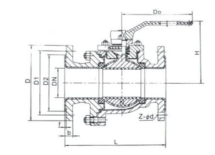 Q41F46襯氟球閥--主要外形和連接尺寸: