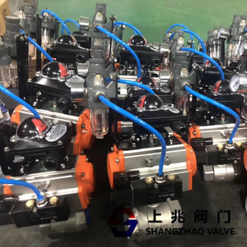 氣動(dòng)開(kāi)關(guān)球閥還配有行程限位開(kāi)關(guān)、電磁閥、減壓閥和0.4-0.7MPa氣源實(shí)現(xiàn)開(kāi)關(guān)操作,并發(fā)出兩對(duì)無(wú)源觸點(diǎn)信號(hào)指示閥門的切換。