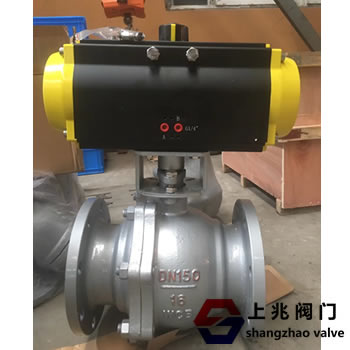 氣動球閥的球體.采用上、下兩根閥桿固定.工作時,流體壓力不會使球體向閥座移動,閥座不會承受過大壓力而變形。閥桿部分設(shè)有自潤滑軸承,減少磨擦,開關(guān)扭距小,兩閥座均采用彈簧設(shè)預(yù)緊。密封采用聚四氟乙烯鑲?cè)脘摴虄?nèi),鋼圈后部設(shè)有彈簧,保證閥座緊貼球體。當(dāng)閥門中腔壓力異常升高超過彈簧頂緊力,閥座后退脫離球體,達到自動泄壓效果,壓后閥座自動復(fù)位。結(jié)構(gòu)的先進性使固定球閥的密封性能穩(wěn)定操作省力,使用壽命長,極適用于長輸管線和一般管線。通用球閥有全通徑和縮徑兩種結(jié)構(gòu)形式。用于輸送帖連、易結(jié)渣介質(zhì)管道上的球閥應(yīng)使用全通徑的,方便定期的刮蠟吹掃器的通過。用于輸送氣體或物理性能近似于水的介質(zhì)的管道上宜使用縮徑球閥,因其重量比全徑球閥輕30%左右,有利于減輕管道負(fù)荷,降低成本。球閥是一種轉(zhuǎn)角為90°的旋轉(zhuǎn)類閥門,密封性能優(yōu)良, (全徑球閥)流量系數(shù)大流阻系數(shù)小,結(jié)構(gòu)簡單,使用壽命長,便于維修。產(chǎn)品廣泛應(yīng)用于化工、石油、輕紡、電力、食品制藥、制冷、造紙行業(yè)的系統(tǒng)控制。